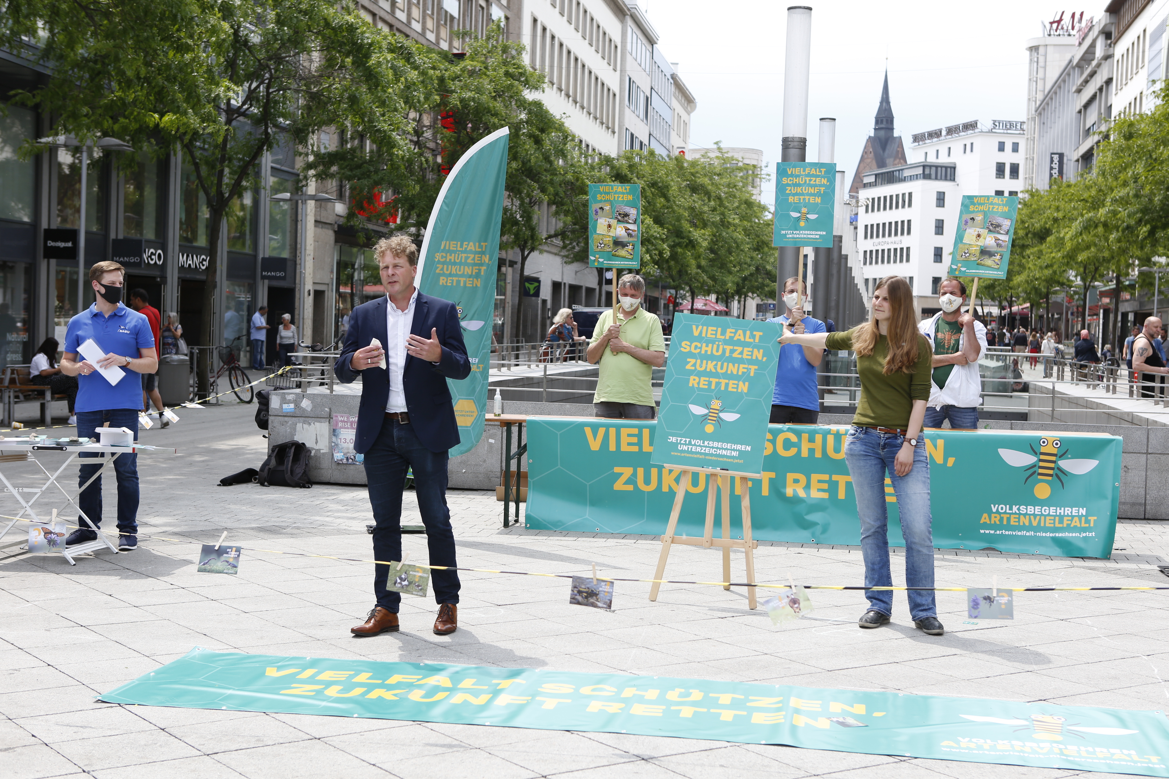 Das Artensterben macht keine Pause, die Aktionsgruppen in ganz Niedersachsen stehen in den Startlöchern und die Unterschriftenbögen liegen druckfrisch bereit: Ab sofort startet das Volksbegehren Artenvielfalt.Jetzt! mit dem Sammeln der Unterschriften! Ein erster Infostand mit dem Initiatorenkreis* des Volksbegehrens in Hannovers Innenstadt machte heute Mittag den Auftakt.