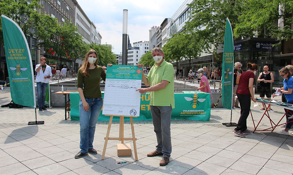 Anfang Juni startet das Bündnis mit dem Sammeln der Unterschriften. 25.000 braucht es im ersten Schritt, um den Antrag auf Feststellung der Zulässigkeit zu stellen. Bereits Anfang August liegen der niedersächsischen Landeswahlleiterin 45.412 geprüfte gültige Unterschriften für das Volksbegehren Artenvielfalt.Jetzt! vor.